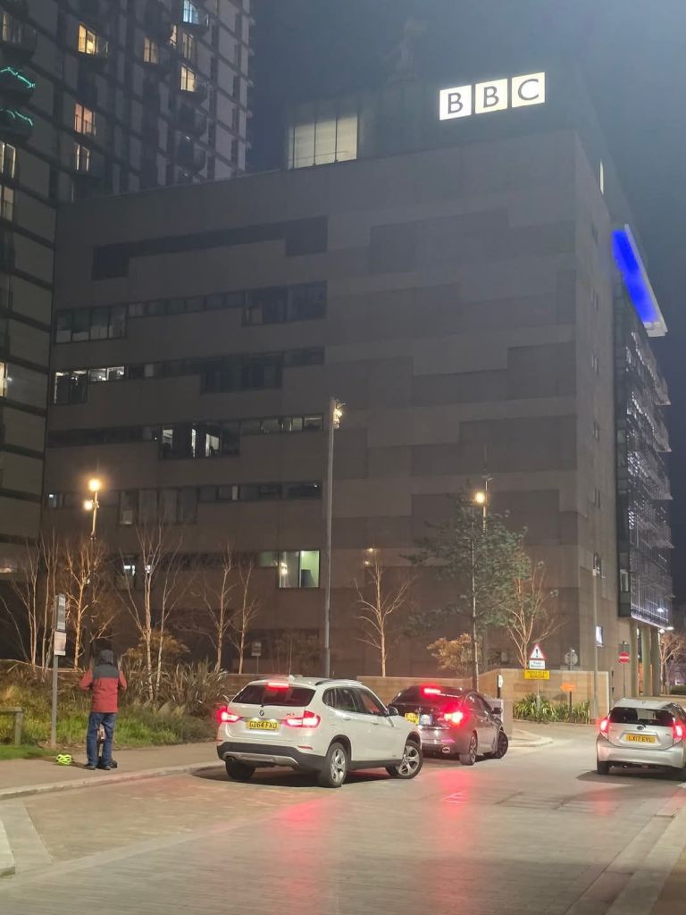 Right now, outside the gleaming front of BBC Manchester, a protest burns—not in numbers, but in unshakable passion.
