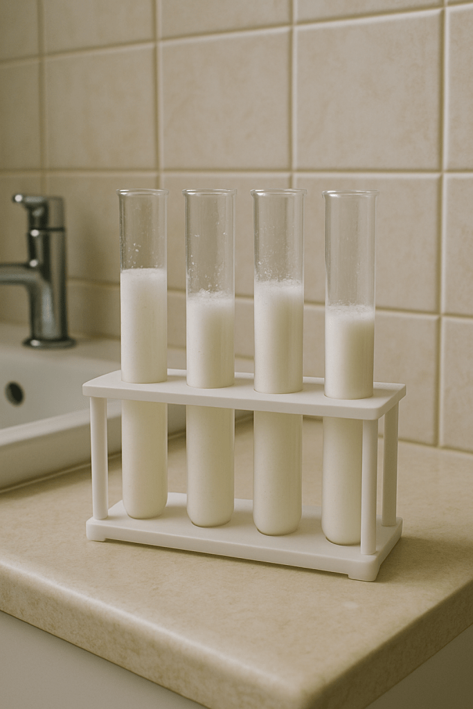 Tiny jars lined up like something you’d find in a science kit — only they were filled with something thick and sickening.
