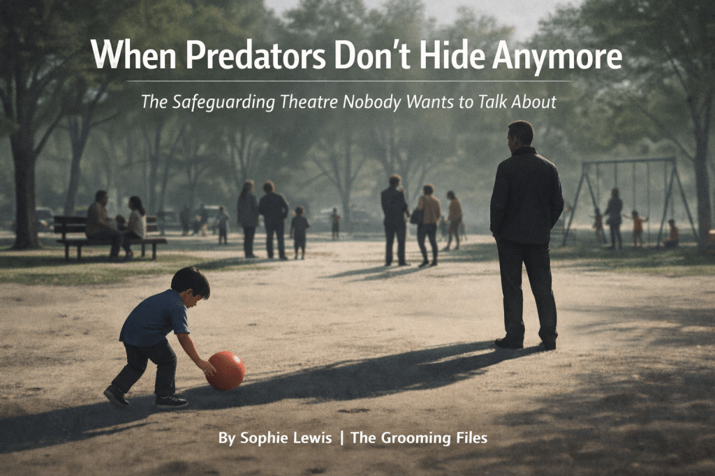 Some of the most concerning predatory behaviours I’ve observed in recent years haven’t happened in secret at all. They’ve happened in plain sight. In families. In community spaces. In online groups. In professional settings. In rooms where safeguarding policies are printed, framed, and proudly displayed on the wall.