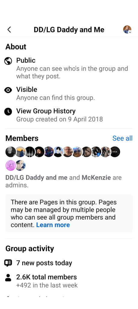 There is a Facebook group called DD/LG Daddy and Me. It was created on 9 April 2018. It has been running publicly, visibly, without meaningful intervention for eight years.